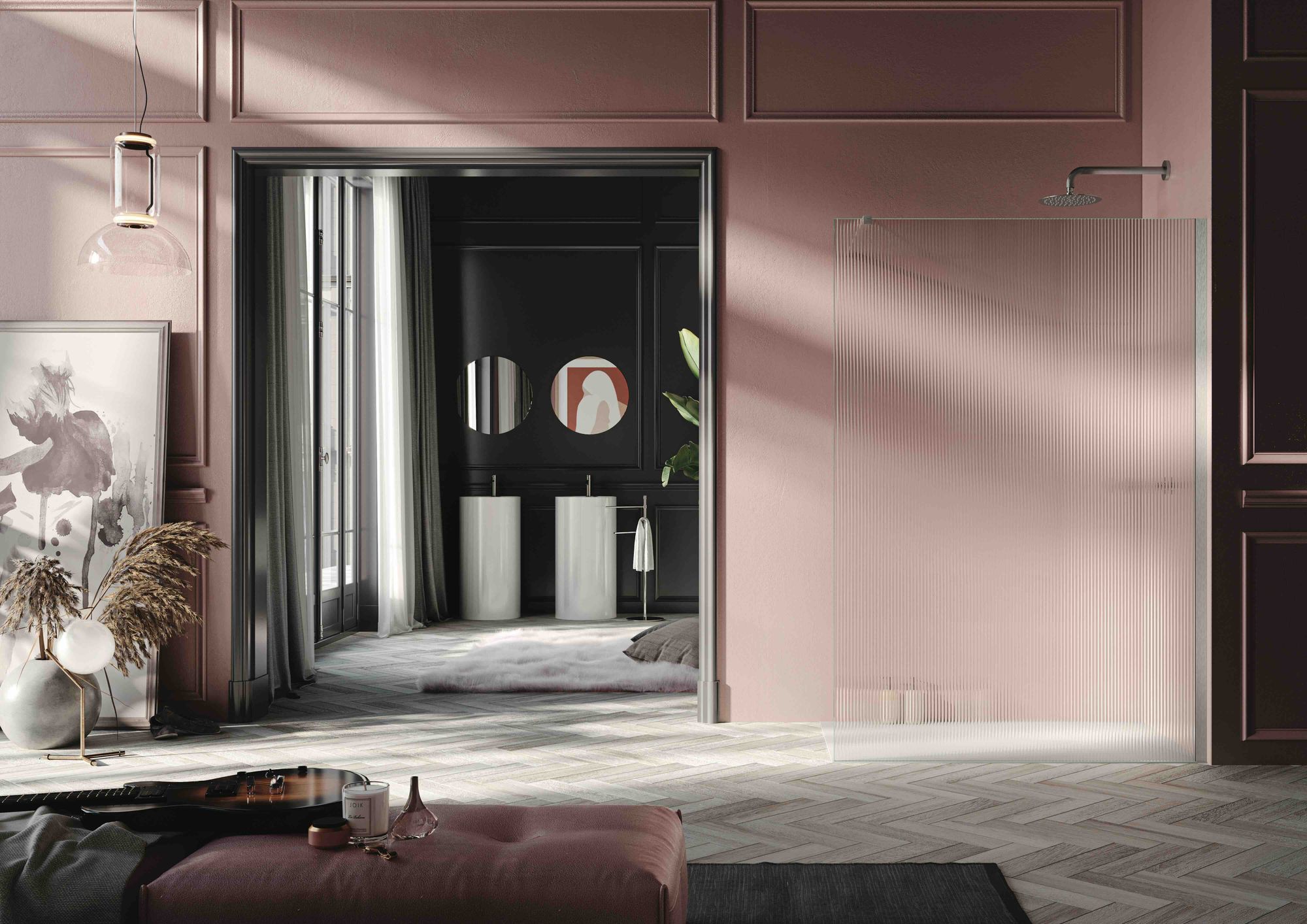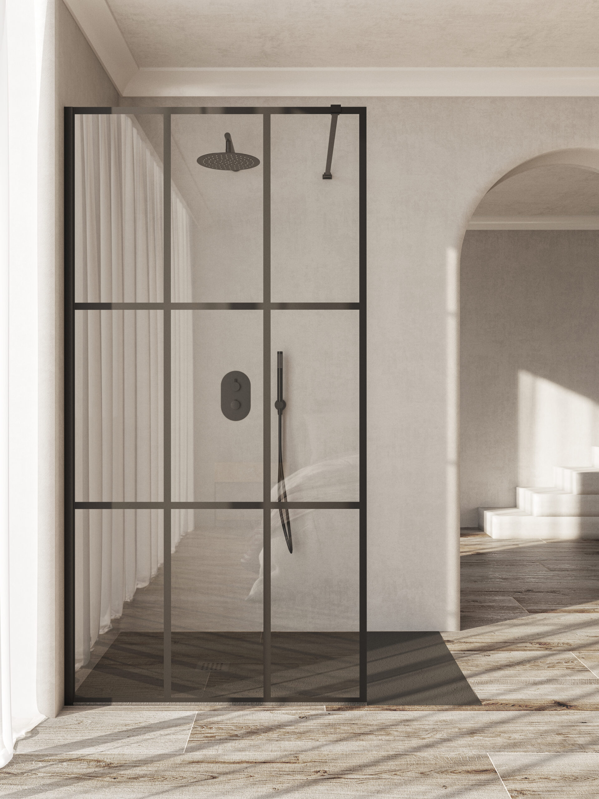 Verre trempé sécurisé pour une résistance optimale, traitements anticalcaires pour un entretien facilité et profils en aluminium ou noir mat pour une touche contemporaine.